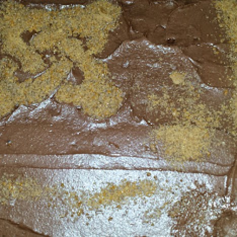 Smelt smørret og rør kaffen i. Lad chokoladekage blandingen køle af og rør derefter flormelis, kakao og vaniljesukker i.